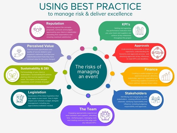 At the heart of this educational core is ‘Best Practice’ – which is so important when it comes to event delivery. I say this because generally event delivery of any size or complexity is a high-risk proposition – and until an event is delivered, it’s predominantly an idea or concept, often with many variables and multiple stakeholders (who often don’t agree with each other).